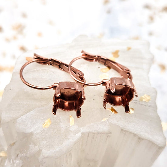 8mm Dark Rose Gold Drop Sparkle Earrings