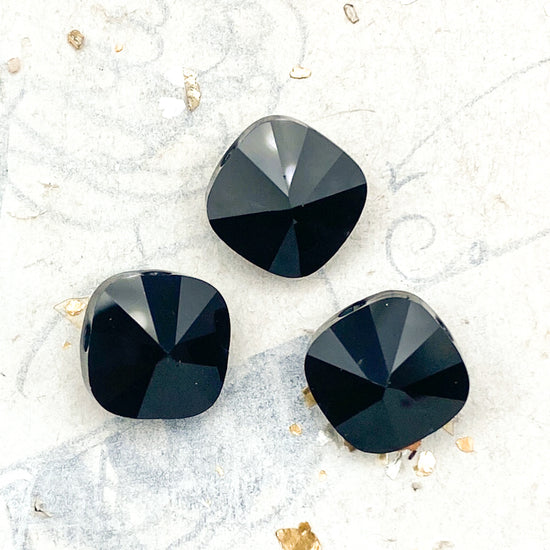 14mm Jet 2-Hole Square Premium Crystal Bead Set - 3 Pcs