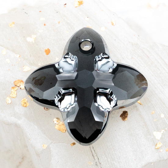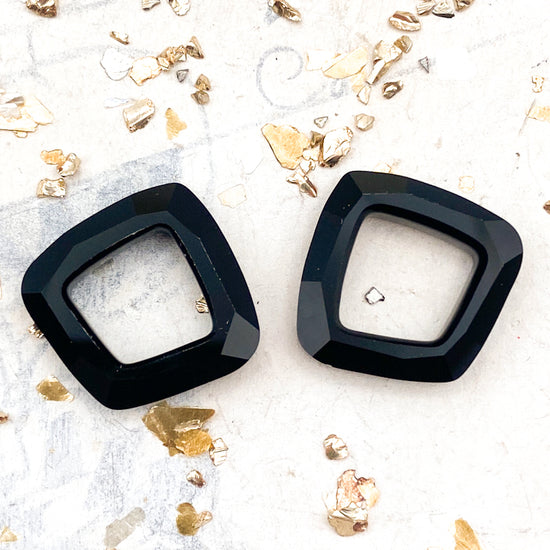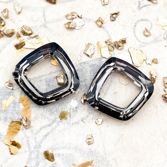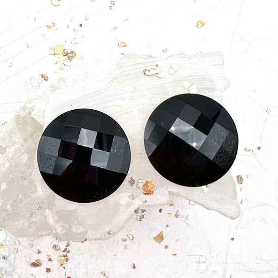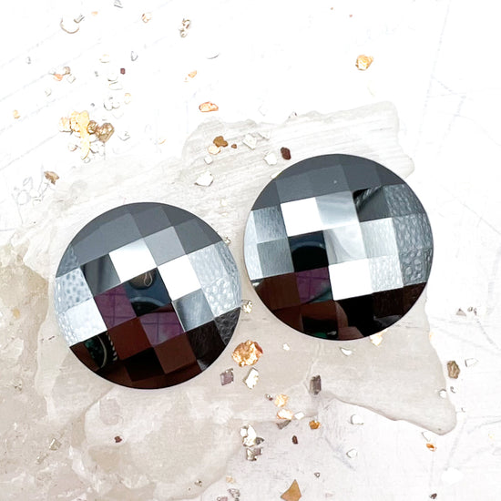 20mm Jet Hematite Checkerboard Crystal Flatback Pair