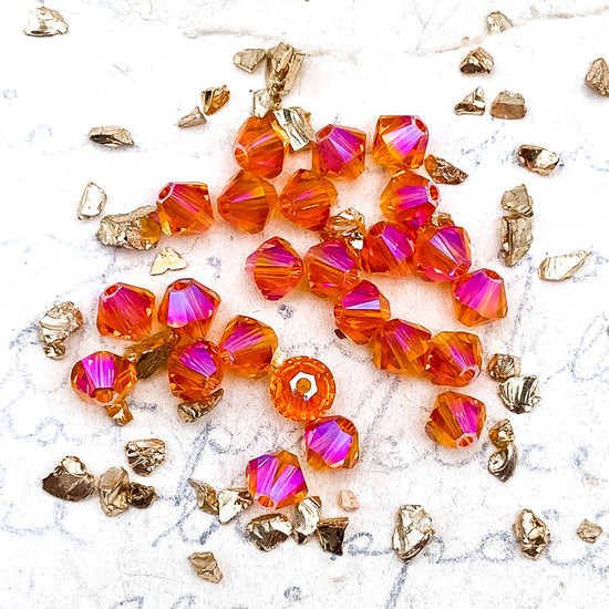 4mm Tangerine Shimmer x2 Premium Crystal Bicone Bead Set - 24 Pcs