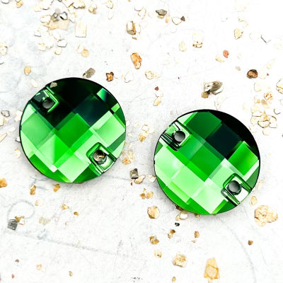 20mm Dark Moss Green Round Checkerboard Premium Crystal Link Pair