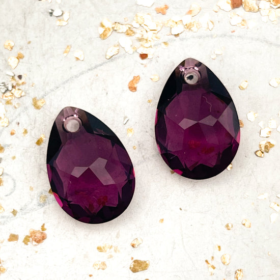 16mm Amethyst Premium Austrian Crystal Pear Pendant Pair
