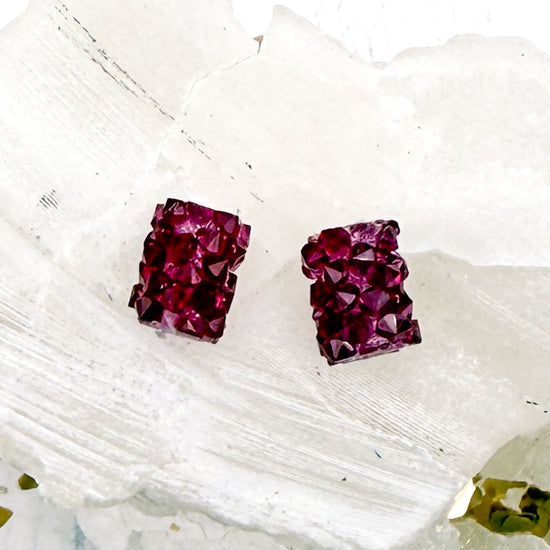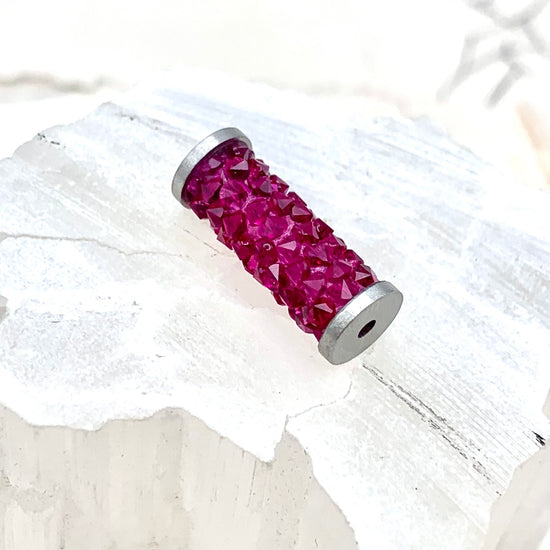 8mm Fuchsia Premium Crystal Fine Rocks Tube Bead Pair