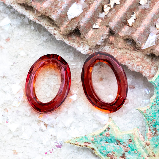 15x11mm Red Magma Cosmic Oval Ring Link Pair