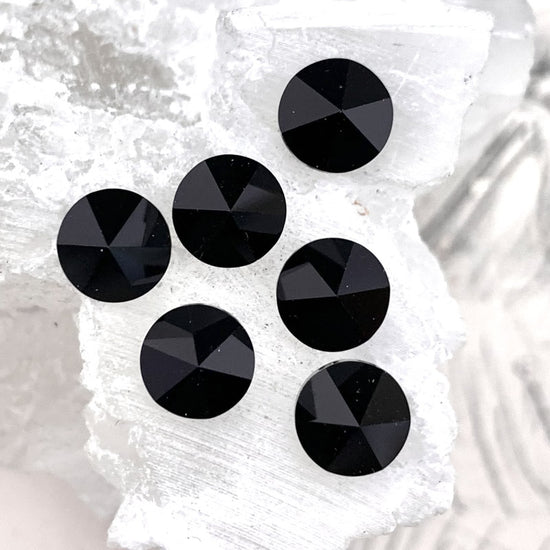7.5mm Jet 2-Hole Round Premium Crystal Spike Set - 6 Pcs