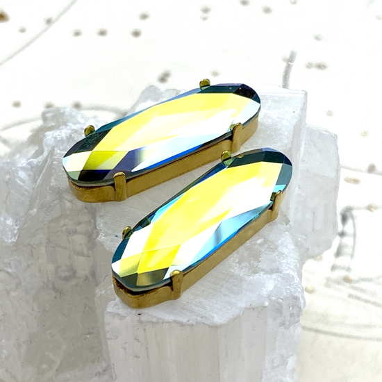 27mm Indicolite AB Classical Oval Fancy Stone Premium Crystal and Brass Setting Pair - No Holes