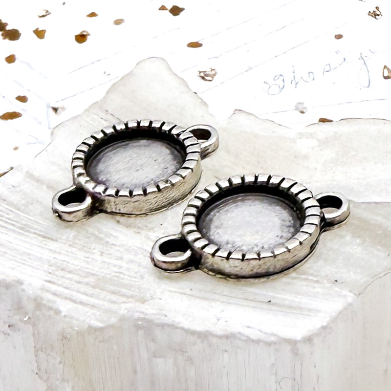 10mm Antique Silver-Plated Resin Blank Connector Bezel Pairs