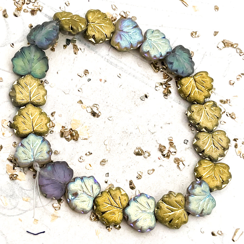 10x13mm Maple Leaf Transparent Glass with Matte, AB, and Gold Finishes