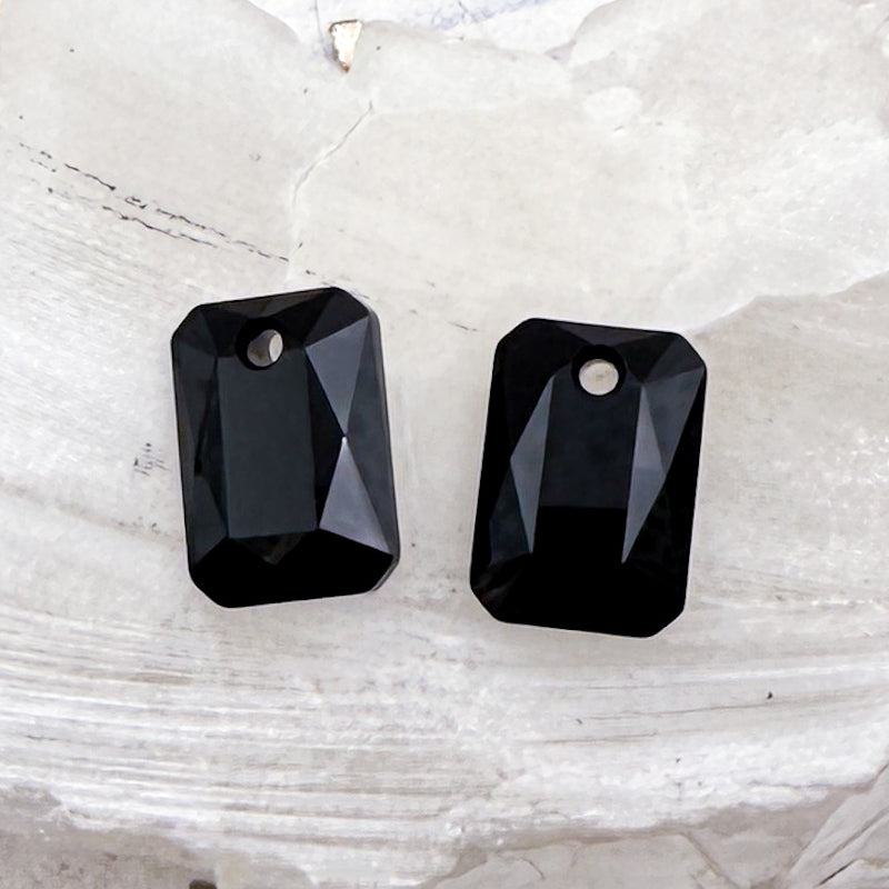 11.5mm Jet Austrian Crystal Emerald Cut Pendant - 2pcs