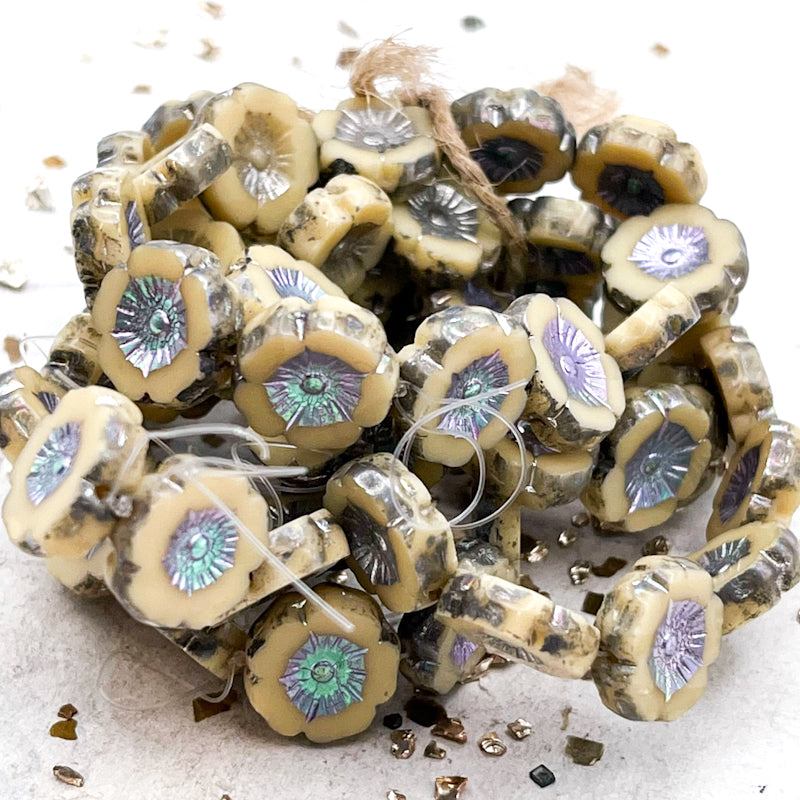 Pre-Order 12mm Hibiscus Flower Beige with Antique Silver and AB Finishes