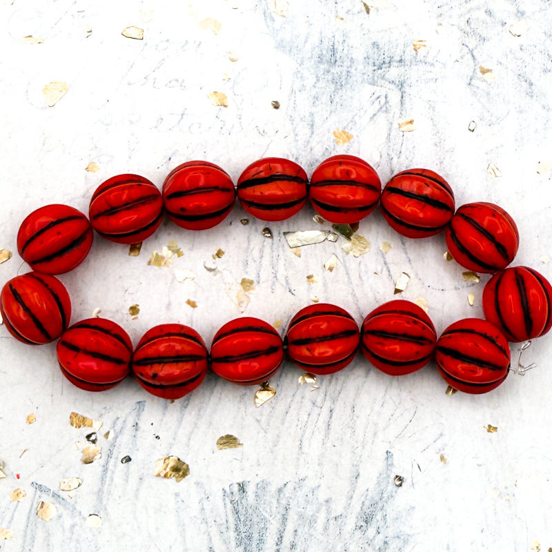 12mm Melon Coral with Brown Wash Bead Strand