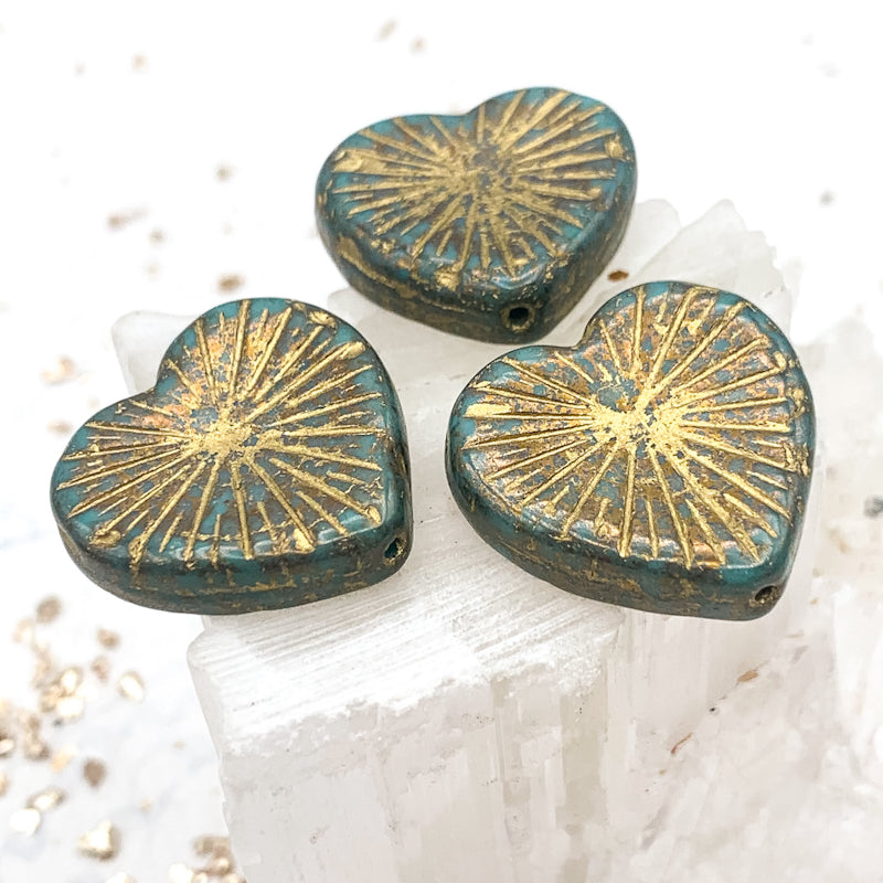 22mm Sea Green with Gold Finish and Gold Wash Flaming Heart Focal Bead