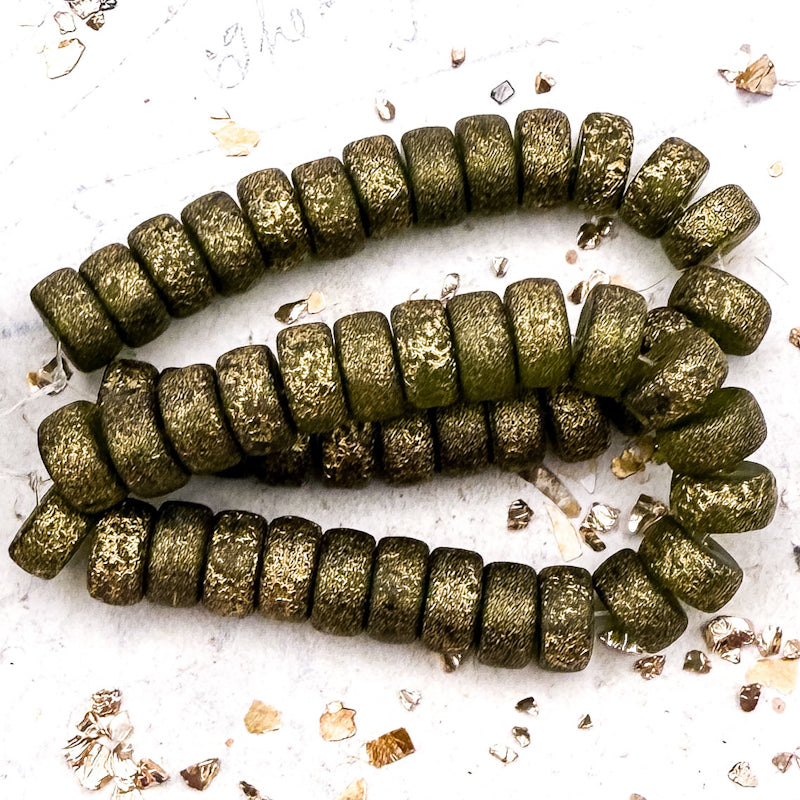 Pre-Order 4x8 Heishi Peridot with Etched and Gold Finishes