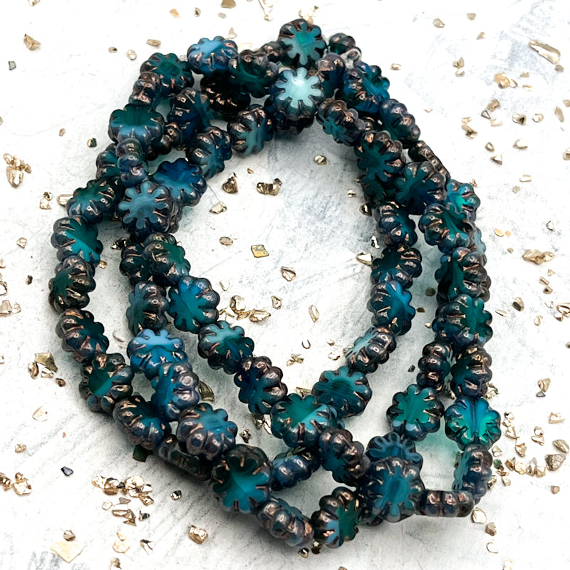 Pre-Order 9mm Cactus Flower Sea Green and Sky Blue with Bronze Finish