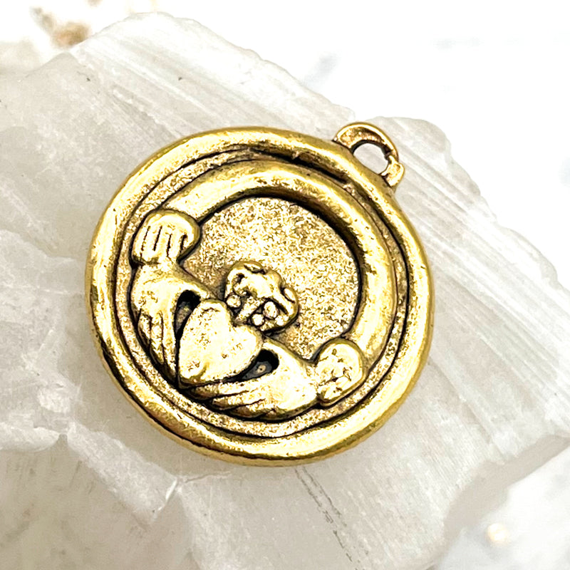 Pre-Order Antique Gold 4-Leaf Clover & Heart Charm
