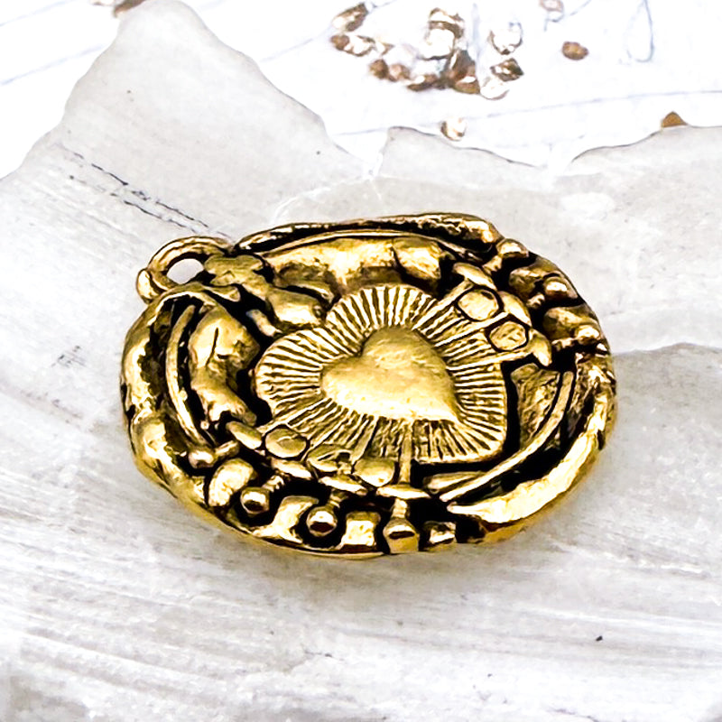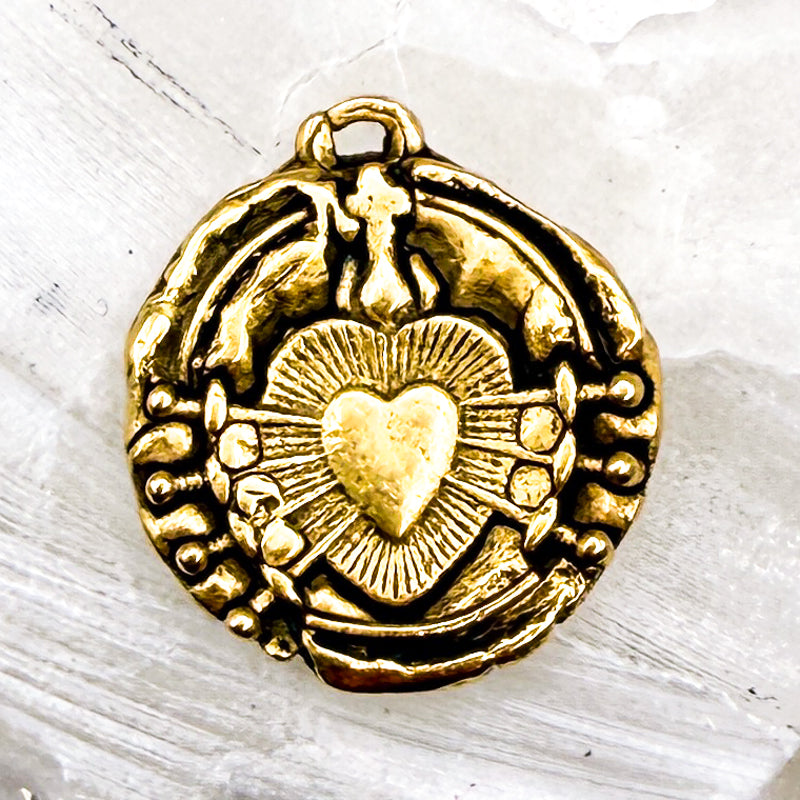 Antique Gold Immaculate Heart of Seven 7 Sorrows Pendant