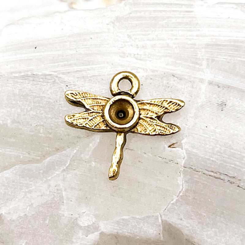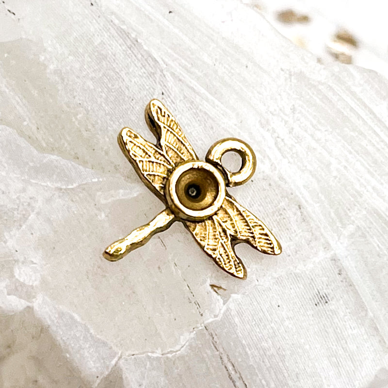 Pre-Order Antique Gold Tiny Dragonfly Bezel Charm