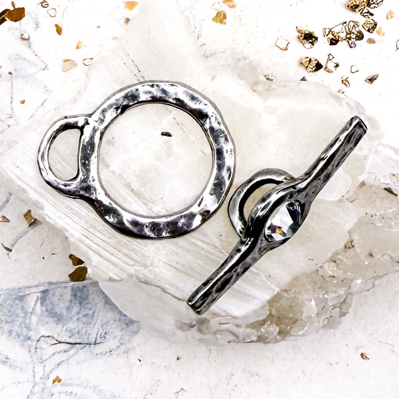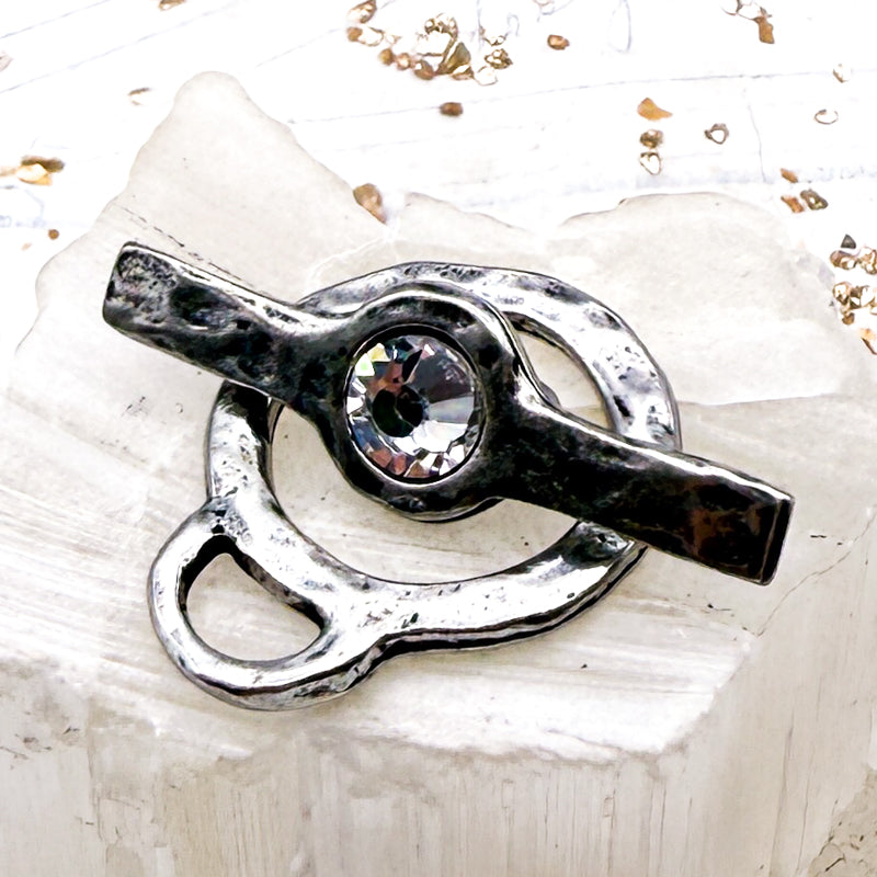 Antique Silver Hammered Toggle with Crystal