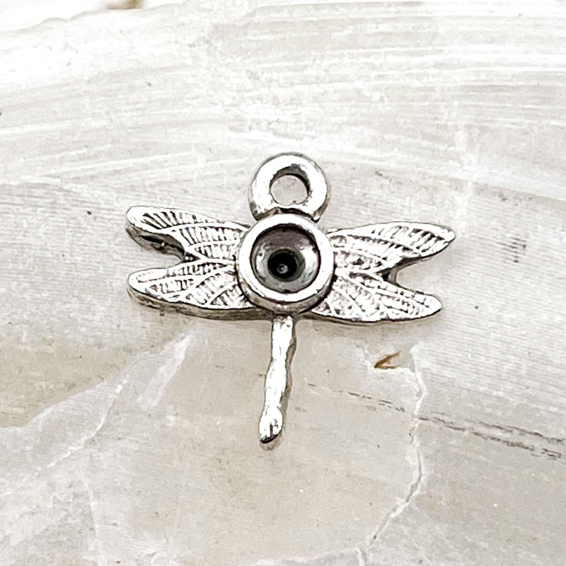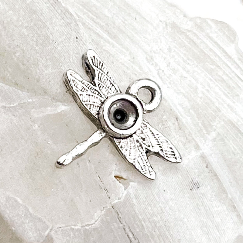 Pre-Order Antique Silver Tiny Dragonfly Bezel Charm