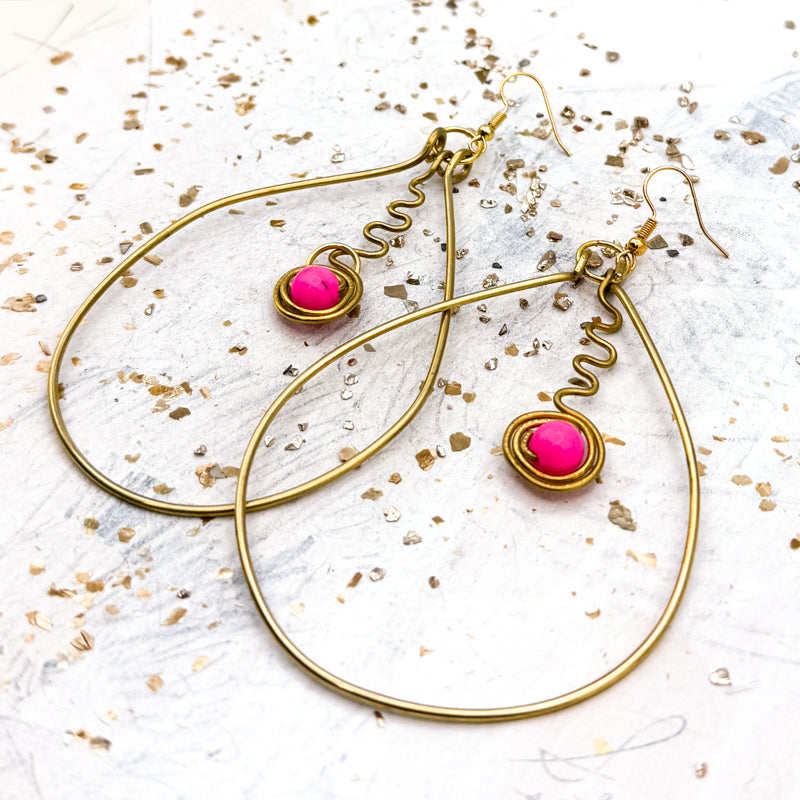 Brass African Earrings - Pink