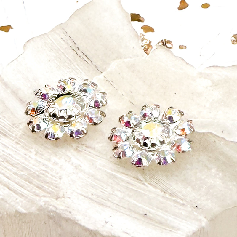 +Listing for a pair of these silver-plated crystal flower beads with AB!