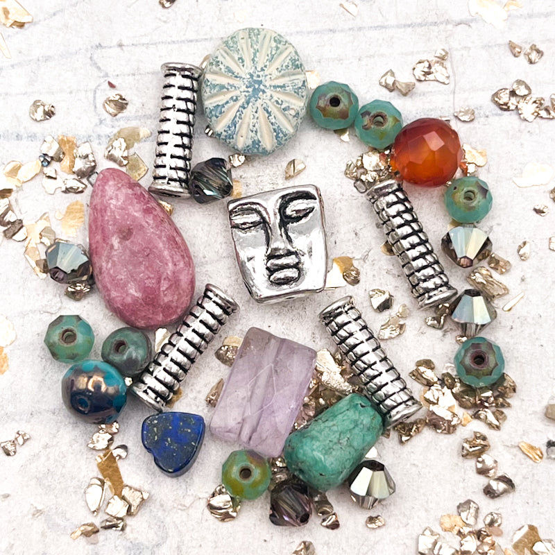 +Silver-plated face bead and bar beads, mixed gemstones make this ancient bead mix perfect for any occasion!