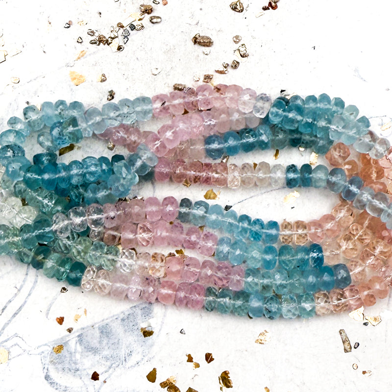Pre-Order Faceted Aqua Multi Faceted Roundel Bead Strand